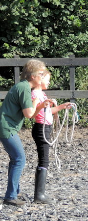 Bij het loswerken loopt het paard los in een afgebakende ruimte van 15 x 15 meter. Het paard is vrij om te handelen en te reageren in deze situatie. Het geeft je in eerste instantie een goede gelegenheid om gedrag te observeren. Het leert je veel over het karakter van het paard. Vervolgens ga je zelf met het paard aan het werk.