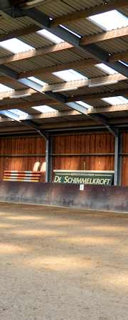 Sinds augustus 2006 zijn we in het trotse bezit van een halfopen buitenrijbaan welke wij met behulp van vrijwilligers en de firma Roozen en Meynen gebouwd hebben.
