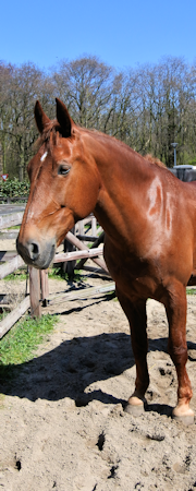 Jullie hebben vast al wel mijn speciale vlek gezien. Het lijkt wel een hartje. Ik heb het erg naar mijn zin hier op de manege. Als je op mij mag rijden dan zal ik zorgen dat ik goed voorwaarts ben en goed luister.