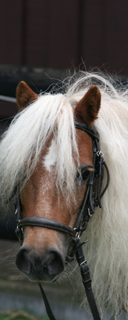 Ik ben niet de jongste, maar wel de kleinste pony. Meestal loop ik voor in de paddock. Soms zijn er kinderen klein genoeg om op mij te rijden, en dan doe ik het erg goed. De meeste vinden mij heel lief en willen mij wel graag poetsen. Mijn lichte manen en staart zijn erg lang. Ik loop tegenwoordig niet meer in de les mee. Ik heb elke dag een verzorgmeisje.